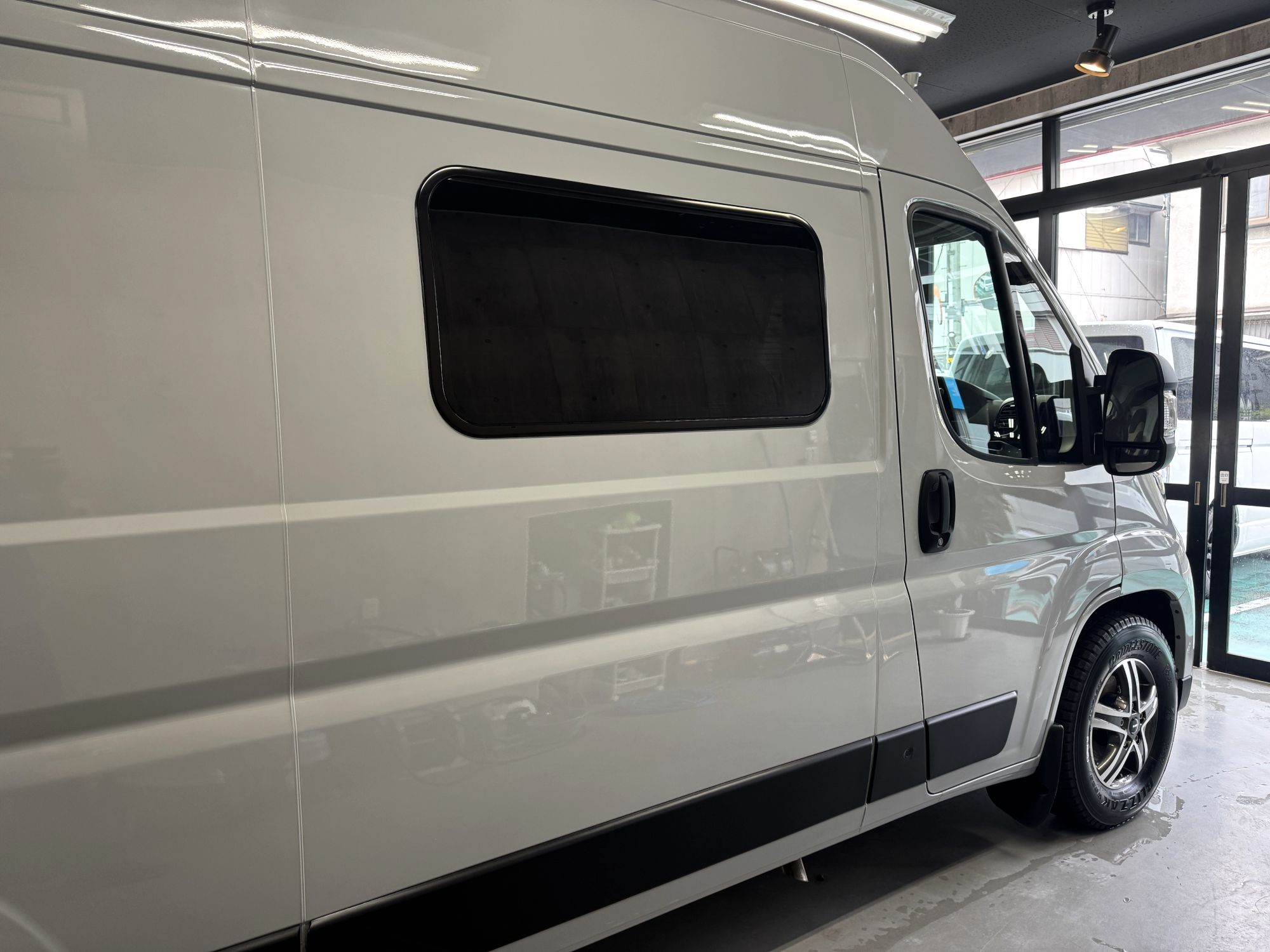 ボディーへのコーティングだけでなく、窓ガラスにも完全プロ仕様の撥水コーティングをすることで、長期間に渡り美しい窓ガラスを維持し続けられます。お勧めのオプションです。